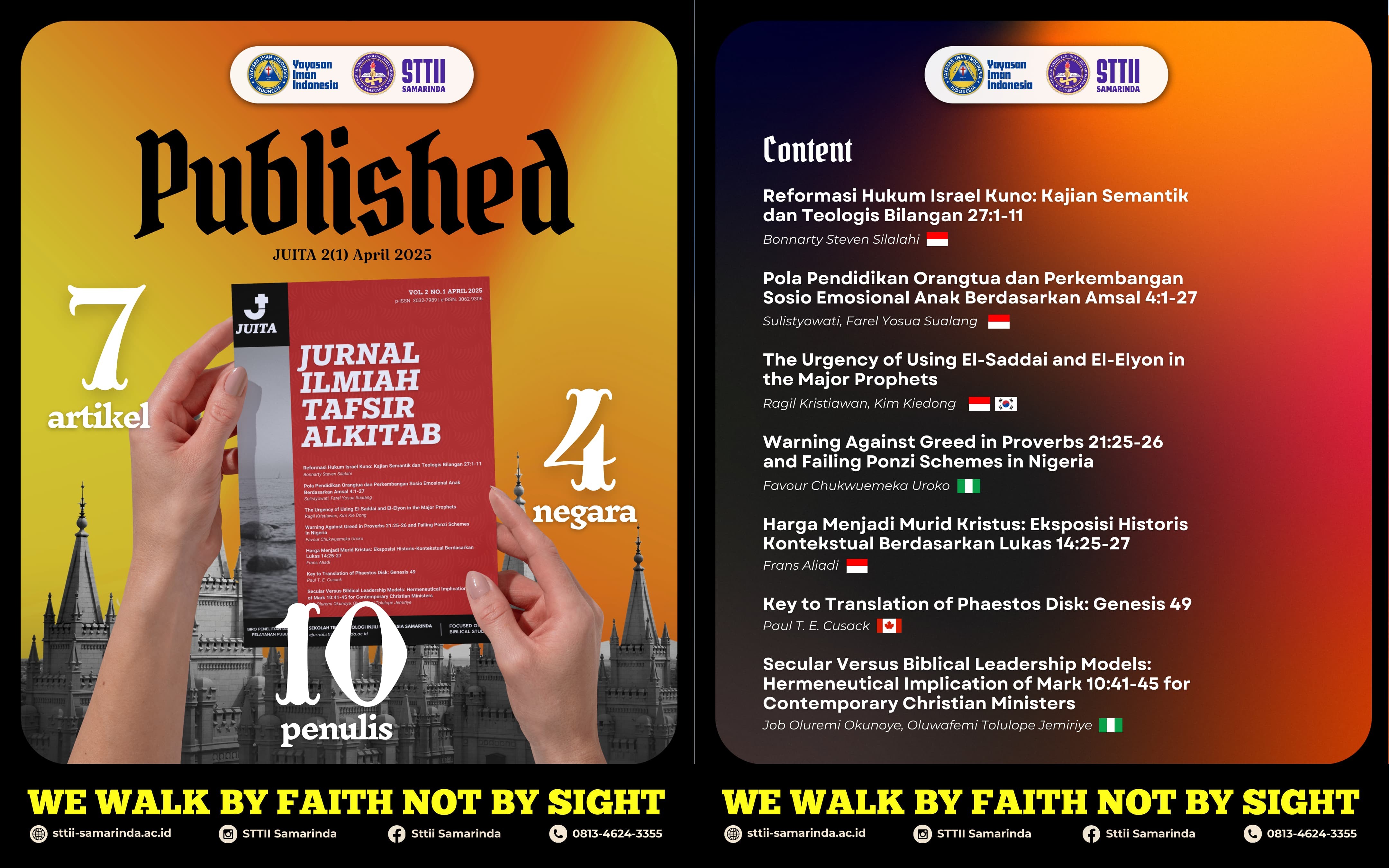 ....... SelengkapnyaSekolah Tinggi Teologi Injili Indonesia (STTII) Samarinda dengan sukacita mengumumkan terbitnya edisi perdana JUITA (Jurnal Ilmiah Tafsir Alkitab) Volume 2 Nomor....... Selengkapnya