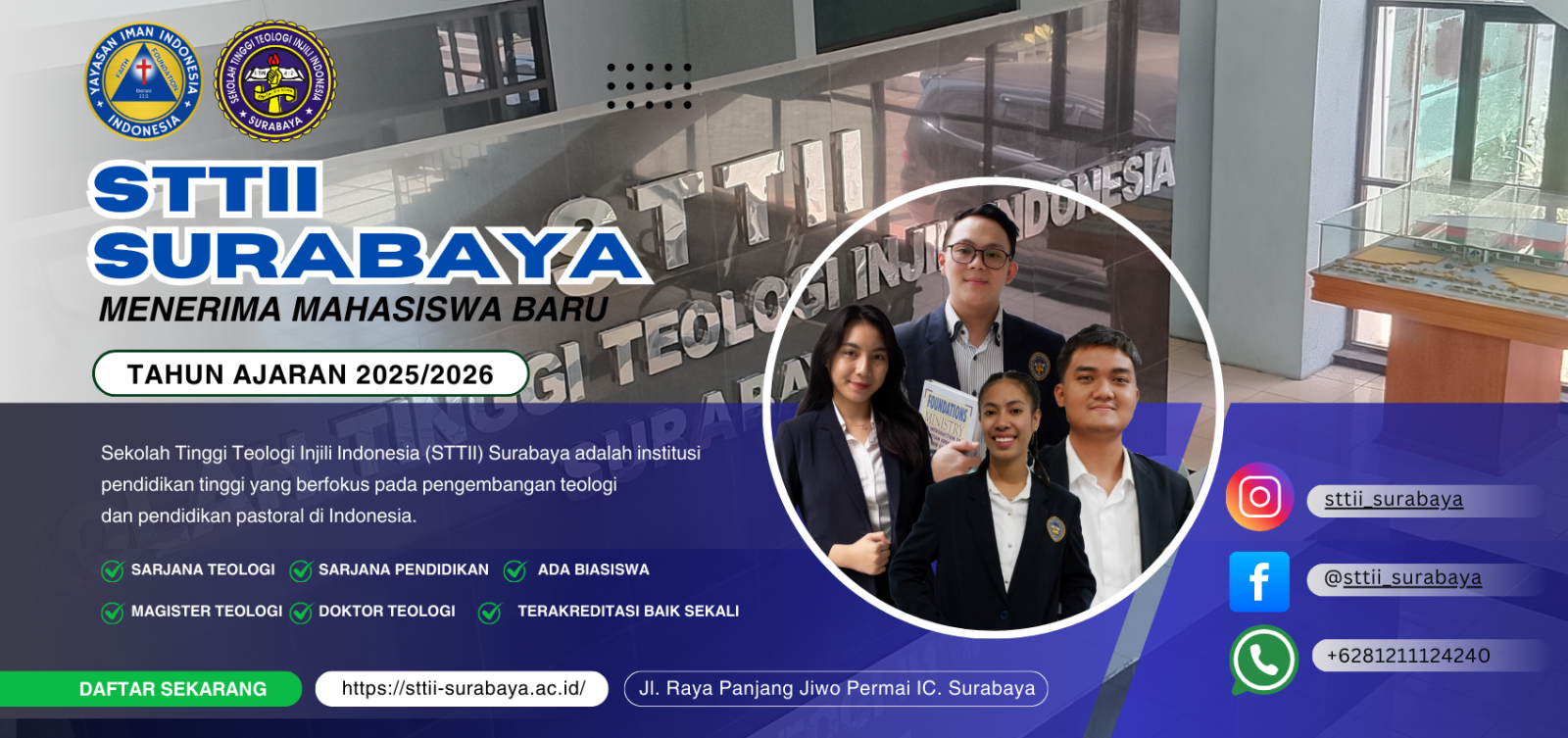Sekolah Tinggi Teologi Injili Indonesia (STTII) Surabaya membuka kesempatan bagi Anda yang terpanggil untuk mendalami teologi dan pelayanan Kristen. Kami menyediakan program pendidikan teologi berkualitas yang membekali Anda menjadi pemimpin Kristen yang unggul dalam iman, ilmu, dan karakter.